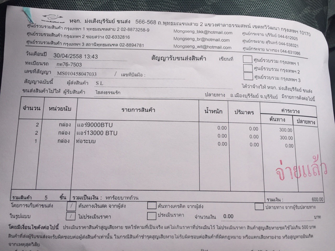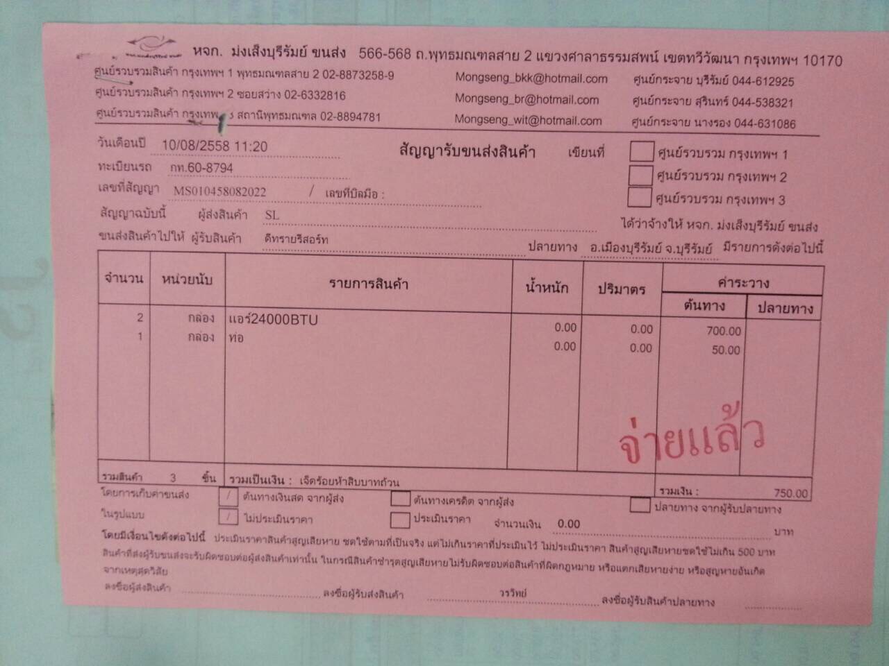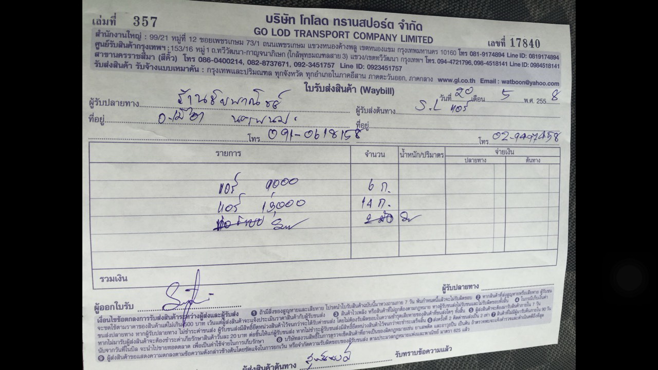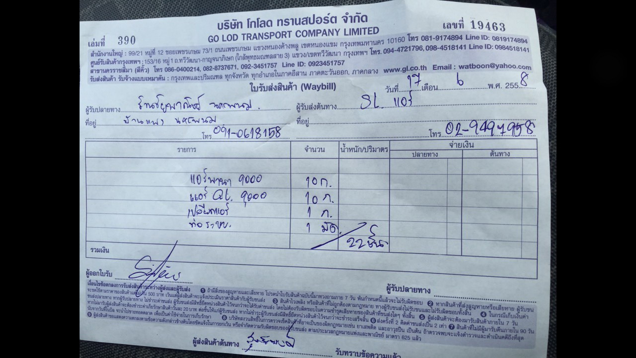 ตัวอย่าง ใบขนส่ง
