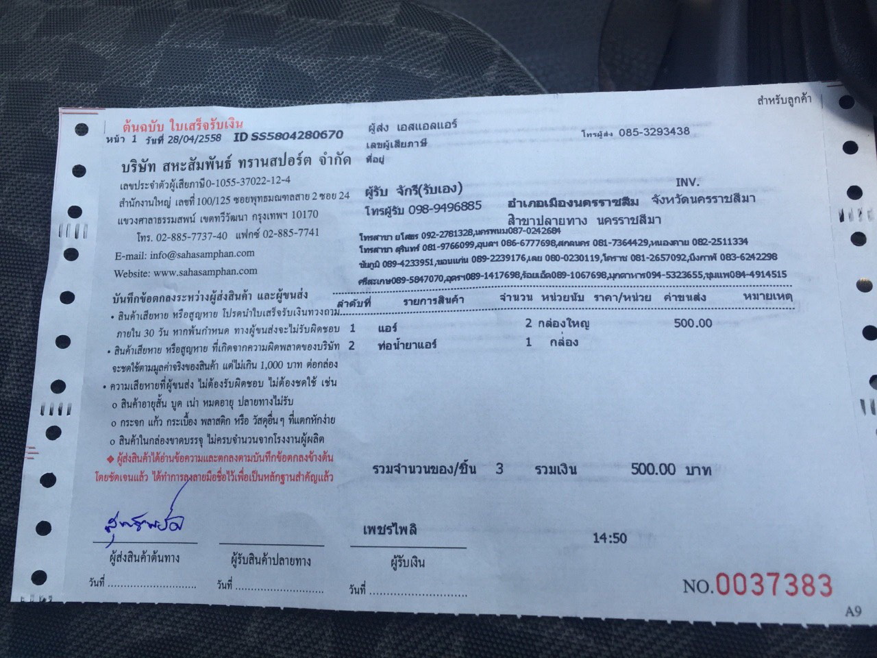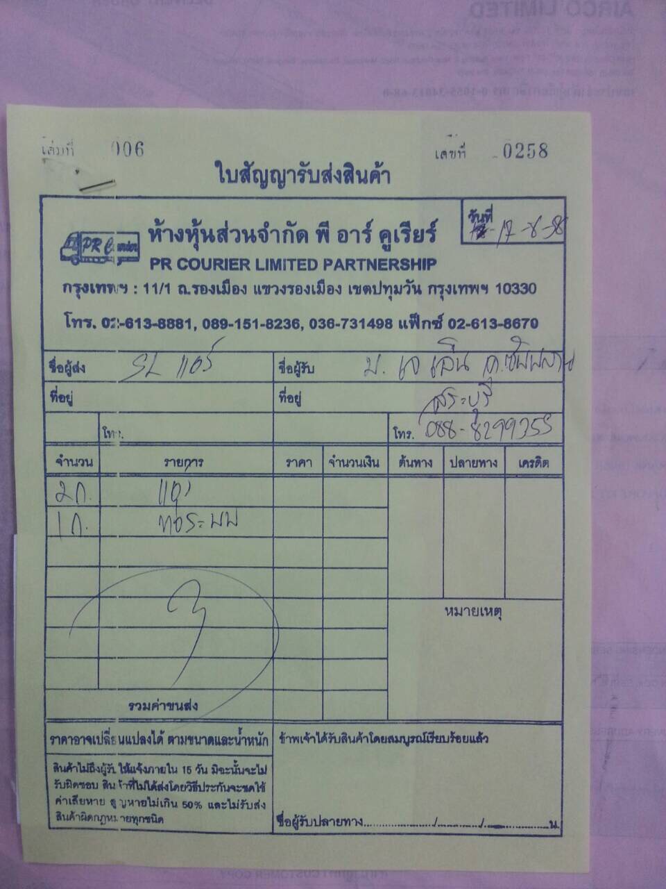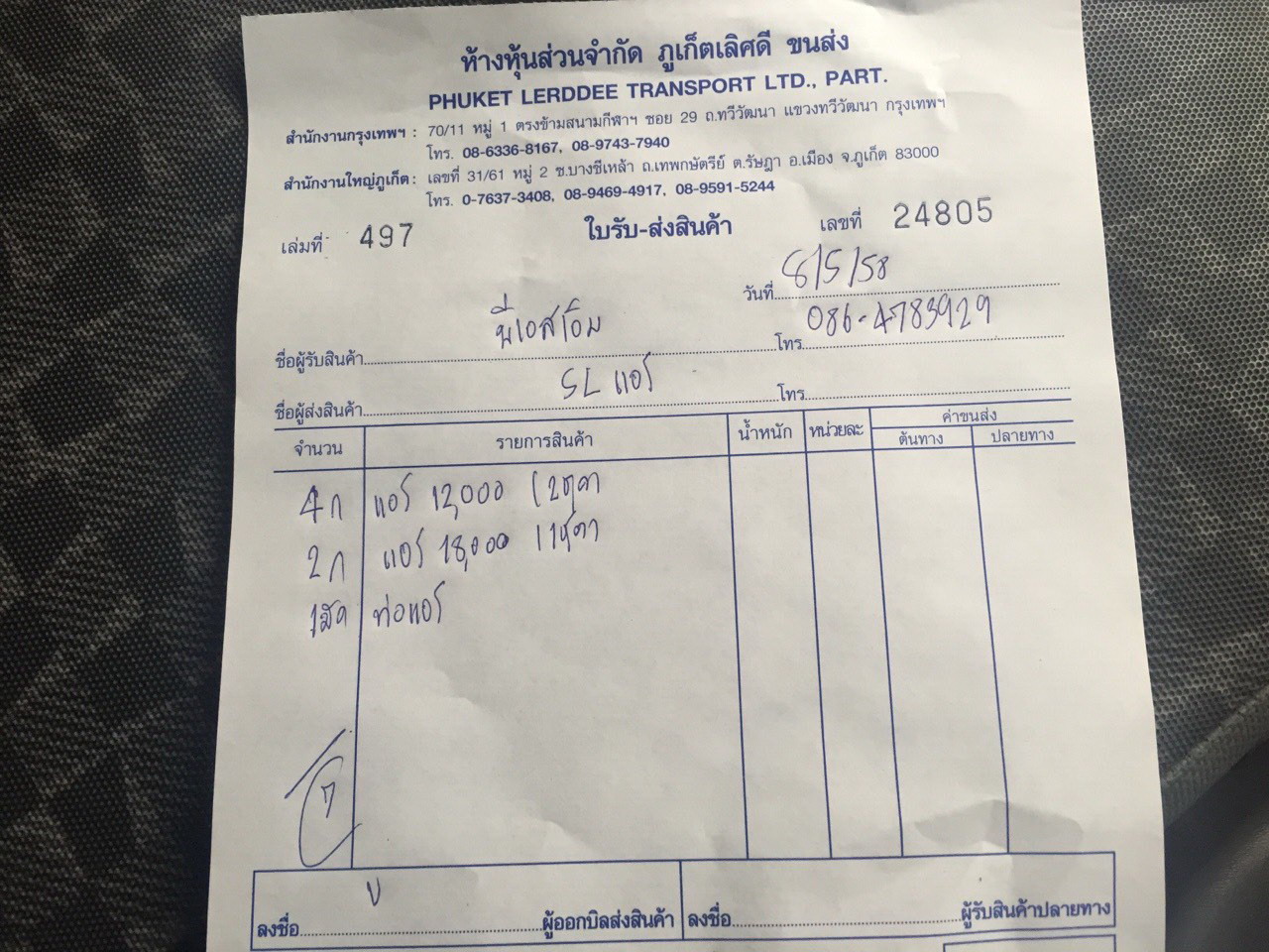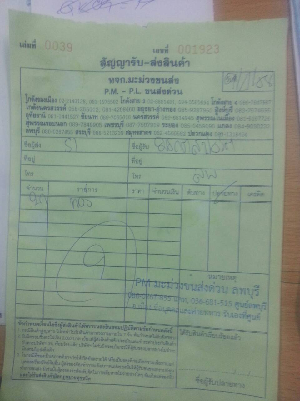 ตัวอย่าง ใบขนส่ง